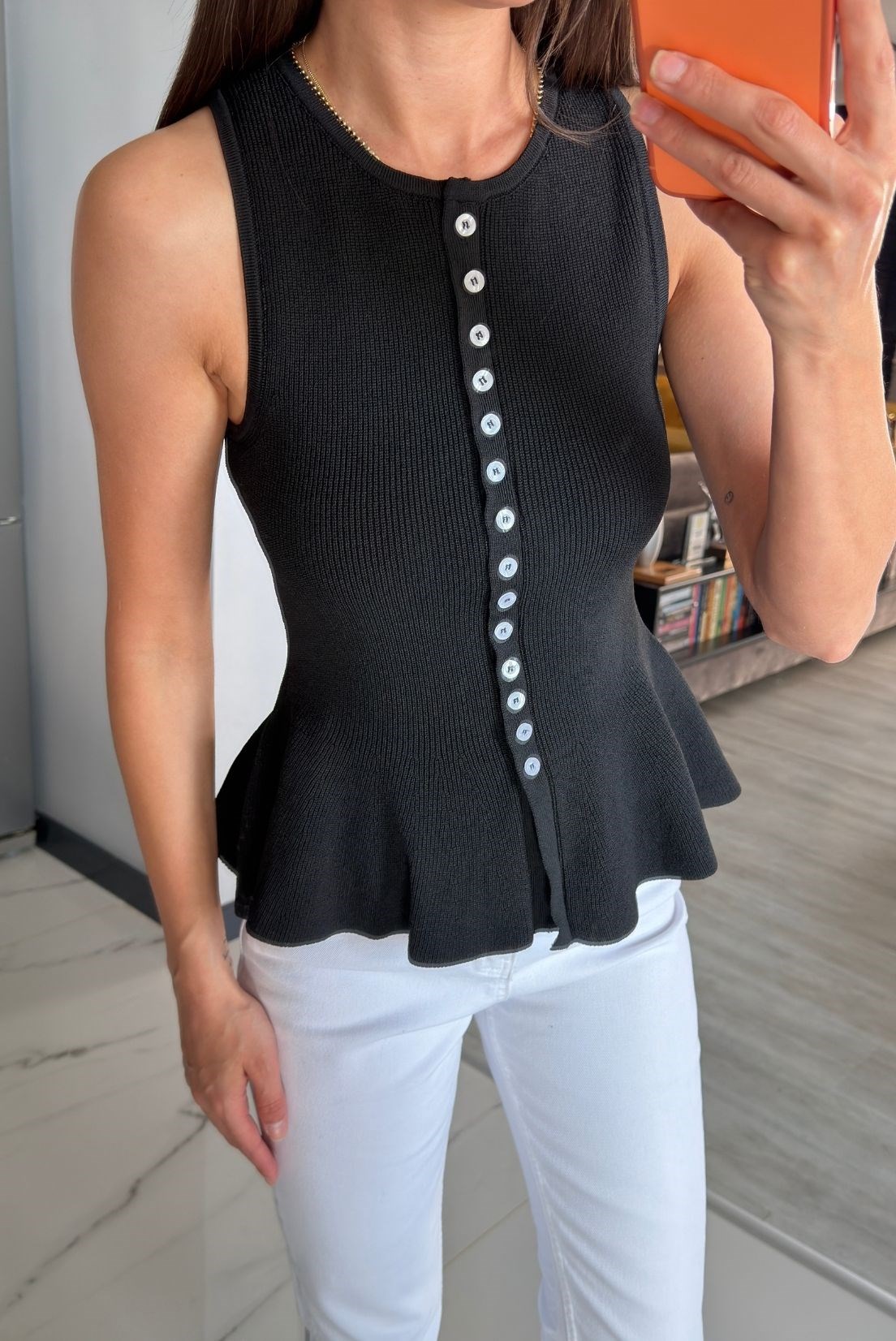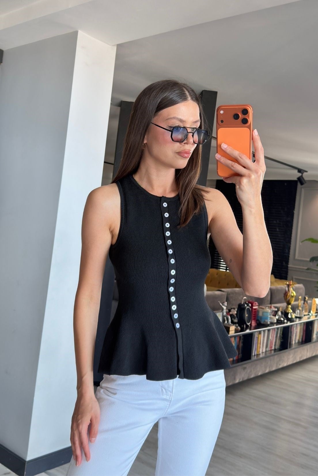 Düğme detaylı fitilli triko yelek