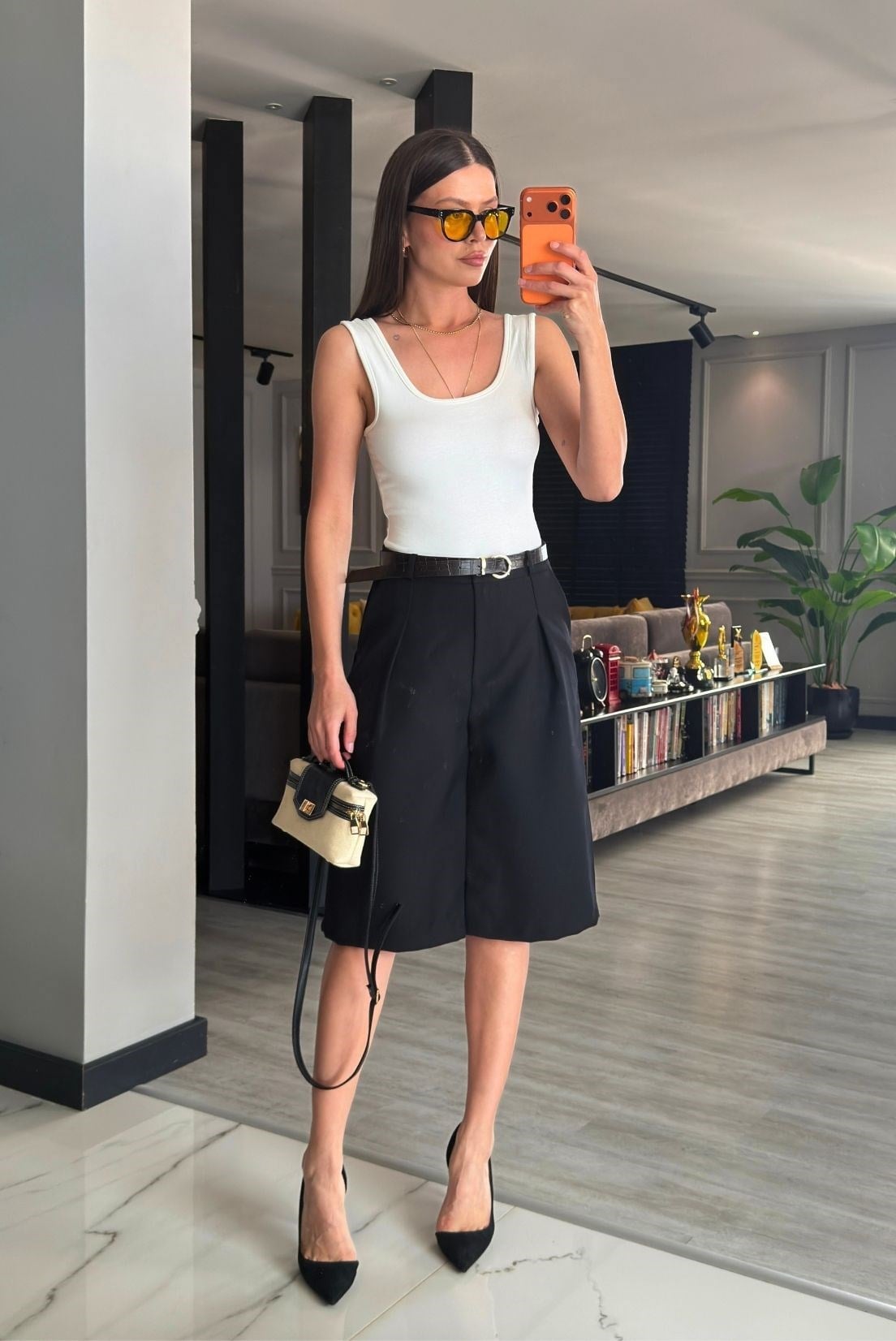 Zra bermuda şort kemerli ,ön cepli,pensli,duble kumaş